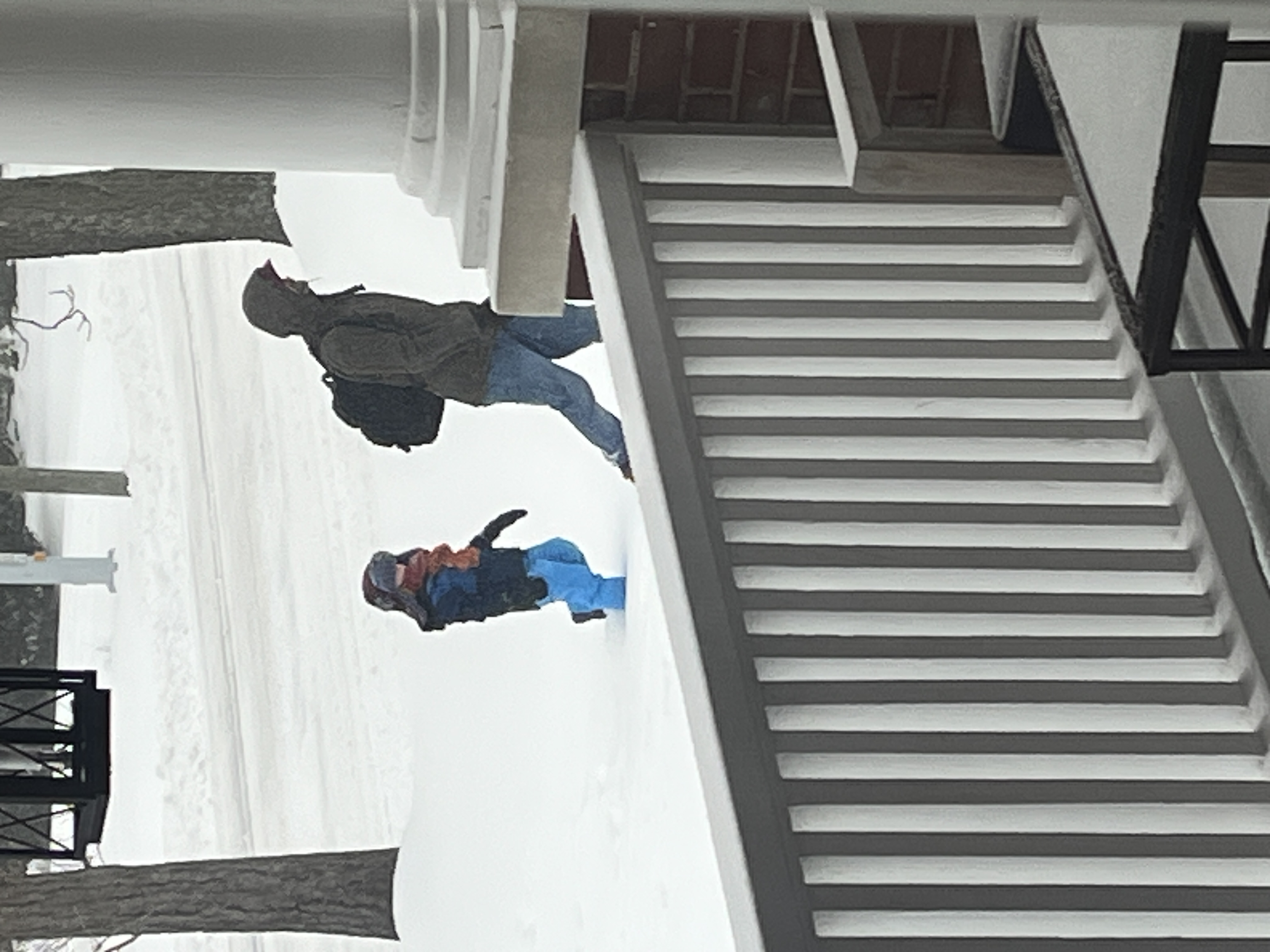 Day 1, Jan. 25: Matt Springmann and his eldest son, Felix, return home after a walk in the soft snow Sunday, Jan. 25, in Fairfax County. The quiet snowfall later transitioned into a historic ice storm that paralyzed much of the region for more than a week.